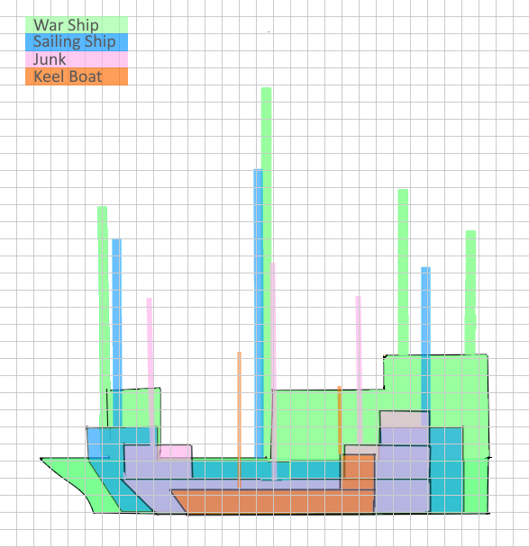 Keelboats – Slower vessels. Often fishing ships and very local merchants.